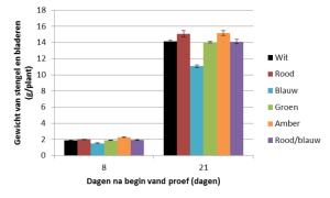 Teelt 3-4 weken onder 6 lichtkleuren: