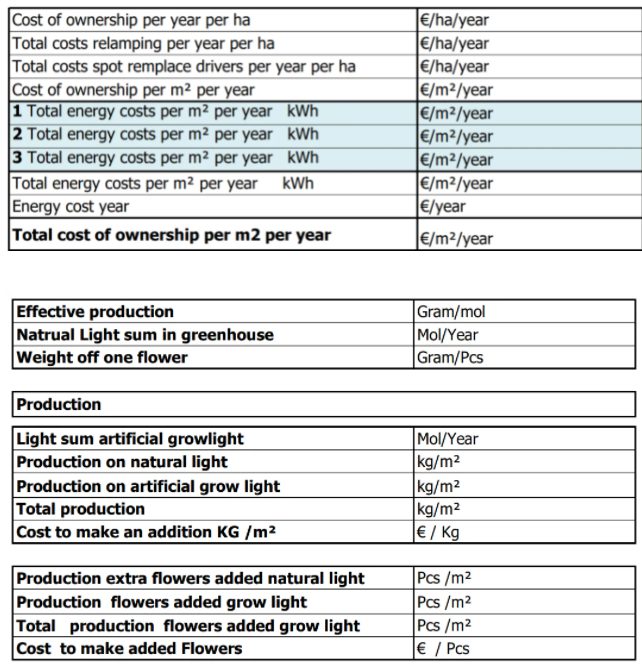 Filling in or adjusting the specifications of various grow light systems allows us to make a comparison between, for example, one hectare of Full LED, one hectare of Hybrid LED and one hectare of SON-T – and then see what the cost difference is on the bottom line.